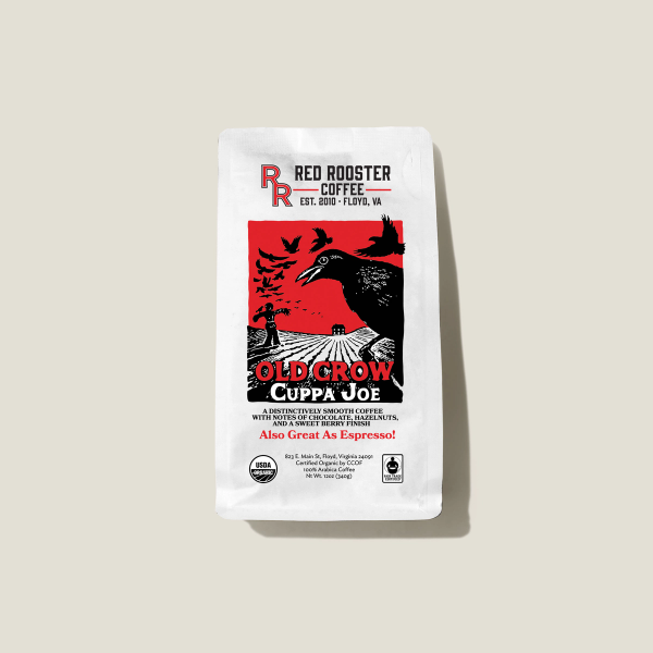 The art of coffee blending, sometimes unfairly maligned by single origin enthusiasts, has been around since the earliest days of coffee trading. The intent of a perfect coffee blend is to piece together traits of different varietals, processes, and roast profiles to develop a cup with a specific set of attributes. For example, our Funky Chicken blend is designed to suit those coffee drinkers who are interested in a slightly bolder cup of coffee, but don't want the roasty notes of a dark roast, and prefer a sweet and balanced finish. This is achieved through what is known as a "post-roast" blend, meaning 3 coffees are roasted to 3 profiles and then blended together at specific ratios. In contrast, the Floyd Farmhouse is a "pre-roast" blend (coffees are blended in green form, then roasted to the same profile) and designed to have a fruit forward, sweet, and milder taste profile. The Old Crow (post-roast blend) is designed to taste great as espresso, and the 4&20 (pre-roast blend) is our darkest blend offering.