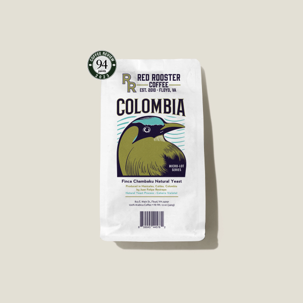 This unique microlot comes to us from renowned producers Elmer and Juan Restrepo and their innovative specialty coffee farm Finca Chambaku. Located in Manizales, Colombia, the wet climate creates many challenges for natural processing, making this delicious coffee all the more impressive. Deeply sweet and fruity, the cup has a lovely Sauvignon Blanc acidity and a banana aroma.