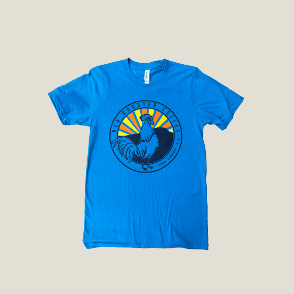 This super comfy and lightweight tee, made with organic cotton, is produced in the USA and screen-printed in Floyd. It features our fun Rooster Sunrise design and has a unisex slim fit. Stay stylish and casual in this bright blue beauty!