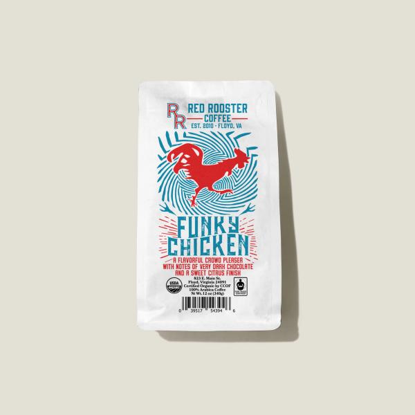 One of our most popular blends is also available in decaf! Just like the caffeinated Funky Chicken, this coffee is an earthy, chocolatey crowd pleaser with notes of praline, dark chocolate and citrus with light acidity and caramel sweetness.