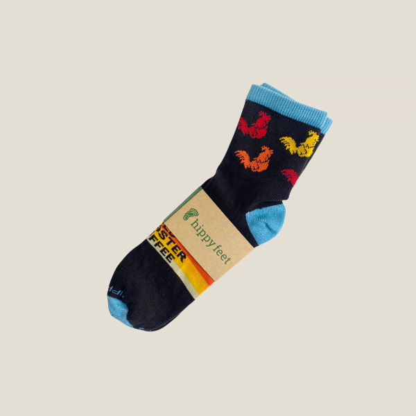 Upcycled and so comfy, these Red Rooster quarter-crew socks are made to last. Every pair is knit using cotton recycled from t-shirts, saving 130 gallons of water that would be required by growing new cotton for your socks. Made in North Carolina by our friends at Hippy Feet, these are the Goldilocks of socks - not too short, not too tall, - just right.